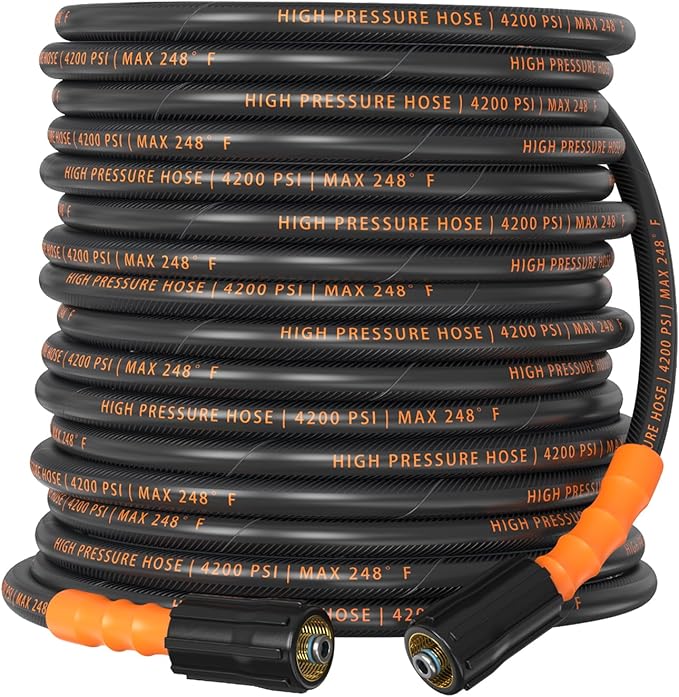 The best flexible pressure washer hose should offer durability and kink resistance, ensuring it withstands high water pressure without tangling or cracking. It should be made from high-quality materials like reinforced rubber or polyurethane for longevity and flexibility. Additionally, the hose should have secure and leak-proof fittings compatible with various pressure washers. Another key feature is lightweight design for ease of use and maneuverability during cleaning tasks. A good flexible hose also provides excellent pressure ratings matching your washer to maintain optimal performance without bursting or losing pressure.